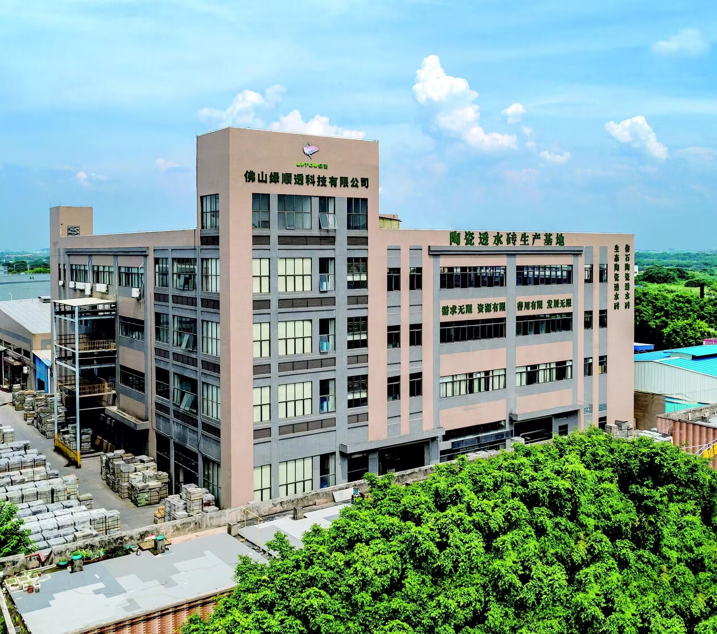 綠順透科技有限公司,地處中國陶瓷基地“廣東佛山”,歷史悠久, 人杰地靈,交通發達,資源豐富,是一座現代化工業城市。 綠順透科技是一家集科研、開發、生產、銷售為一體,是目前國內外規模較大的專業生產研發生態陶瓷透水磚、陶瓷仿石pc磚的現代企業。